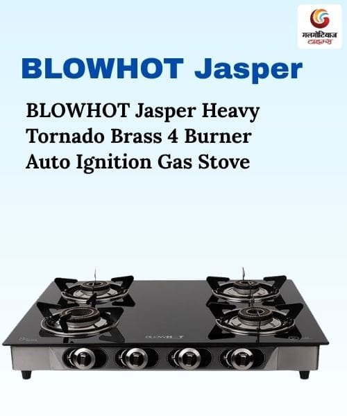 अगर आप 10 हजार की कीमत में Blowhot का गैस स्टोव खरीदना चाहते हैं तो आपके लिए BLOWHOT Jasper Heavy Tornado Brass 4 Burner Auto Ignition Gas Stove एक शानदार विकल्प हो सकता है। इस BLOWHOT Gas Stove को मजबूत ग्लास से बनाया गया है, जिसकी वजह से यह काफी स्ट्रांग है। इसकी मदद से आप कोई भी 4 डिश आसानी से बना सकते हैं। इसमें 4 बर्नर दिए गए हैं और यह ब्रास के बने हुए हैं। इसका वजन 7 किलोग्राम है।