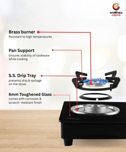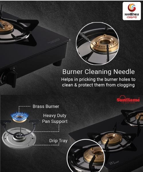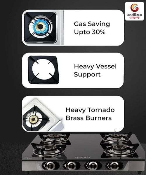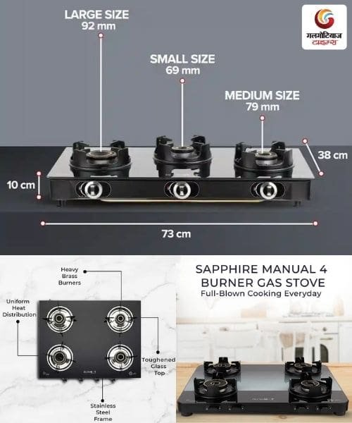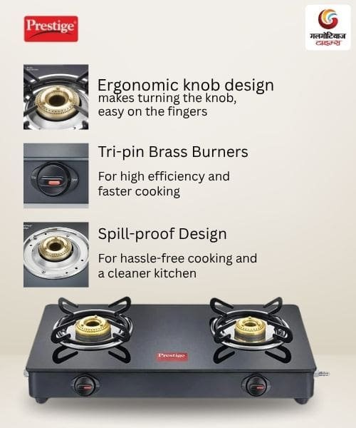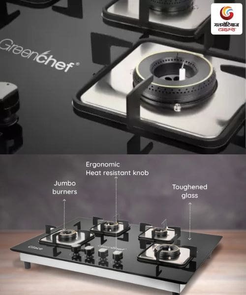 - जंबो बर्नर: बड़े बर्तन आराम से रखे जा सकते हैं और पकाने की गति भी अच्छी रहती है।