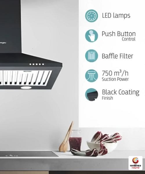 अगर आप Whirlpool जैसे भरोसेमंद ब्रांड की चिमनी ढूंढ रहे हैं, तो Whirlpool Classic Plus BF 60 BK आपके लिए एक भरोसेमंद और संतुलित विकल्प हो सकता है. 900 m³/hr की सक्शन पावर के साथ यह चिमनी छोटे और मीडियम किचन के लिए उपयुक्त है. इसका बैफल फिल्टर खासतौर पर इंडियन कुकिंग को ध्यान में रखकर डिज़ाइन किया गया है, जिससे धुआं और ग्रीस आसानी से कंट्रोल हो जाता है. इसके 3 स्पीड पुश बटन कंट्रोल और एलईडी लाइट आपकी कुकिंग को आसान बनाते हैं. Whirlpool की बिल्ड क्वालिटी और 5 साल की मोटर वारंटी इसे एक भरोसेमंद चॉइस बनाती है. इसका पिरामिड शेप और स्टाइलिश ब्लैक लुक आपके किचन को एक प्रीमियम टच देता है.