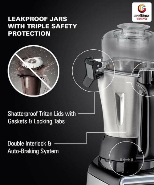 - सेफ्टी का स्तर: इसमें डबल इंटरलॉक सिस्टम और ऑटो ब्रेकिंग तकनीक है, जो जार और ढक्कन सही से लॉक होने पर ही ब्लेड को चालू होने देती है और ढक्कन हटते ही ब्लेड को 2 सेकंड में रोक देती है, जिससे यह 48,000 बार के उपयोग तक पूरी तरह सुरक्षित और टिकाऊ रहता है.