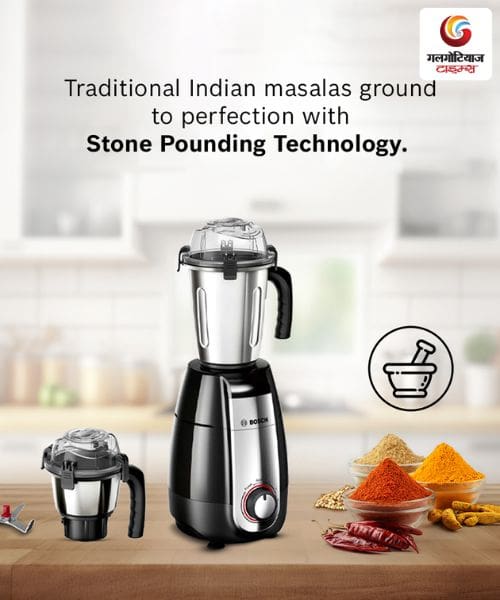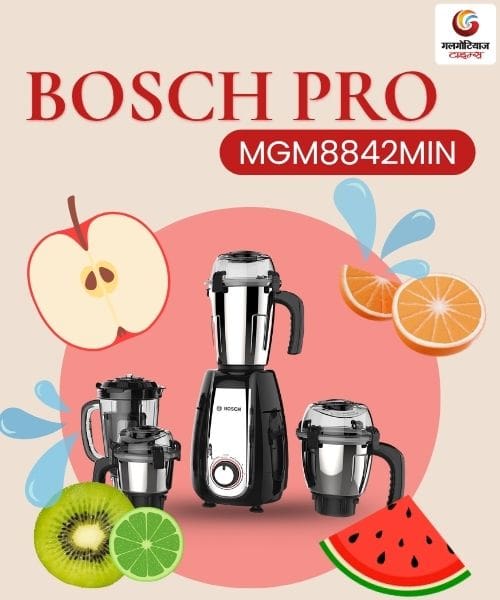 Bosch का यह True Mixx Pro मॉडल एक दमदार और टिकाऊ मिक्सर ग्राइंडर है, जिसे खासतौर पर भारतीय रसोई की जरूरतों को ध्यान में रखकर डिजाइन किया गया है. इसके 1000W के पॉवरफुल मोटर के साथ आने वाले Blunt Pounding Blade की मोटी धारें पारंपरिक कूटने का असर देती हैं — जैसे पुराने जमाने में सिलबट्टे पर मसाले कूटे जाते थे, वैसा ही असली स्वाद अब इस मशीन से मिलेगा.
