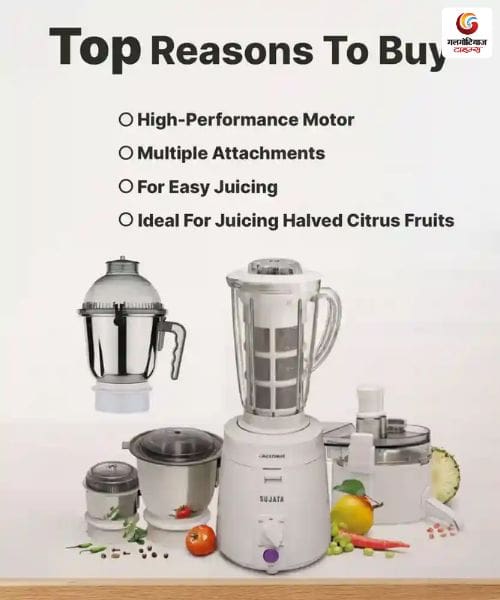 Sujata Multimix भारत का एक भरोसेमंद और लोकप्रिय मिक्सर ग्राइंडर ब्रांड है. यह मशीन उन लोगों के लिए एकदम सही है जो रोज़ाना किचन में भारी काम करते हैं, जैसे कि मसाले पीसना, जूस बनाना, स्मूदी तैयार करना या नारियल का दूध निकालना.
