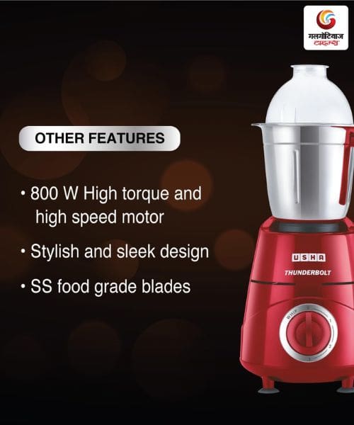 | 5️ | USHA Thunderbolt Pro | 1000W | 4 | ब्लेंडर विद फ्रूट फिल्टर, ओवरलोड प्रोटेक्शन | ₹6,539 |