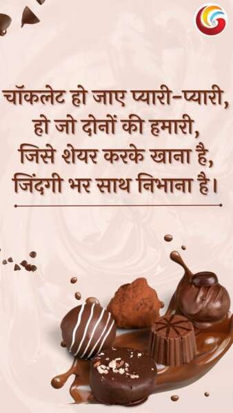 “गुल ने गुलशन से गुलफाम भेजा है, 🌹 सितारों ने आसमान से सलाम भेजा है, ⭐ मुबारक हो आपको चॉकलेट डे का यह प्यारा त्यौहार, 🍫 हमने अडवांस में यह पैगाम भेजा है. 💝”