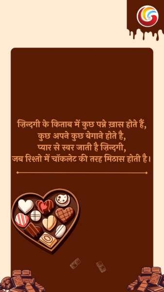 “ज़िन्दगी के किताब में कुछ पन्ने ख़ास होते हैं, 📖 कुछ अपने कुछ बेगाने होते है, 💫 प्यार से स्वर जाती है ज़िन्दगी, ✨ जब रिश्तो में चॉकलेट की तरह मिठास होती है. 🍫”