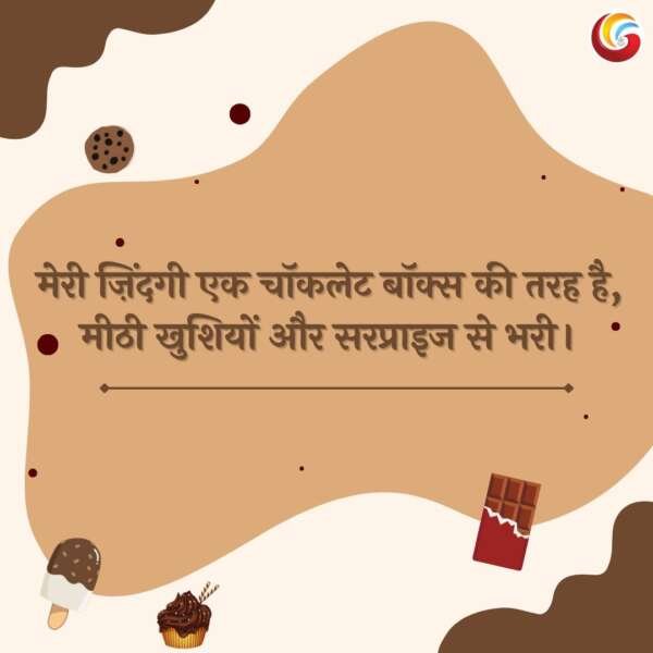 • “🍫 मेरी ज़िंदगी एक चॉकलेट बॉक्स की तरह है, मीठी खुशियों और सरप्राइज से भरी! 🎁✨”