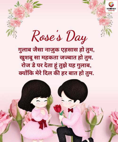 - “जिसे पाया ना जा सके वो जनाब हो तुम, 💫 मेरी जिंदगी का पहला ख्वाब हो तुम, 💭 लोग चाहे कुछ भी कहें लेकिन, 🤫 मेरी जिंदगी का एक सुंदर सा गुलाब हो तुम 🌹 हैप्पी रोज डे ! 💝”