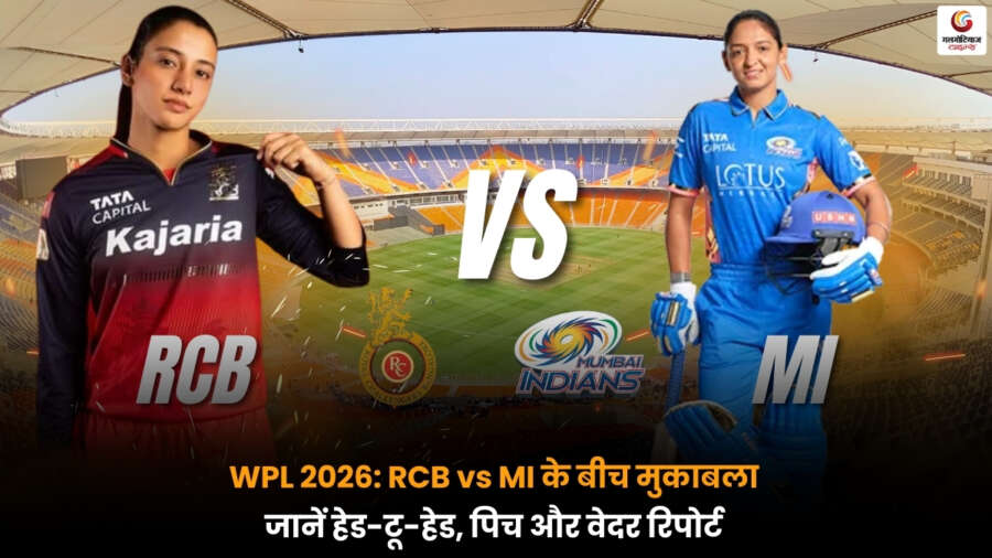 MI-W vs RCB-W Pitch report, Weather report, Head to head: वीमेंस प्रीमियर लीग 2026 की शुरुआत एक बड़े मुकाबले से होने जा रही है. पहला मैच मुंबई इंडियंस और डिफेंडिंग चैंपियन रॉयल चैलेंजर्स बेंगलुरु (Mumbai Indians Women vs Royal Challengers Bengaluru Women) के बीच खेला जाएगा. मुकाबले की शुरुआत शाम साढ़े सात बजे से होगा. दोनों ही टीमें स्टार खिलाड़ियों से सजी हुई हैं और टूर्नामेंट की शुरुआत जीत के साथ करना चाहेंगी. डीवाई पाटिल स्टेडियम की पिच और शाम के समय ओस इस मुकाबले में अहम भूमिका निभा सकती है. ऐसे में टॉस और सही रणनीति बेहद जरूरी होगी. आइए जानते हैं MI-W vs RCB-W 1st match wpl 2026 की पिच रिपोर्ट, मौसम का हाल और हेड-टू-हेड रिकॉर्ड.