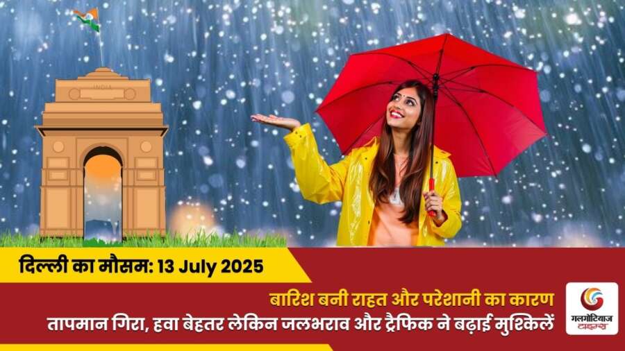 दिल्ली में आज 13 जुलाई का मौसम: बारिश बनी राहत और परेशानी का कारण, तापमान गिरा, हवा बेहतर लेकिन जलभराव और ट्रैफिक ने बढ़ाई मुश्किलें